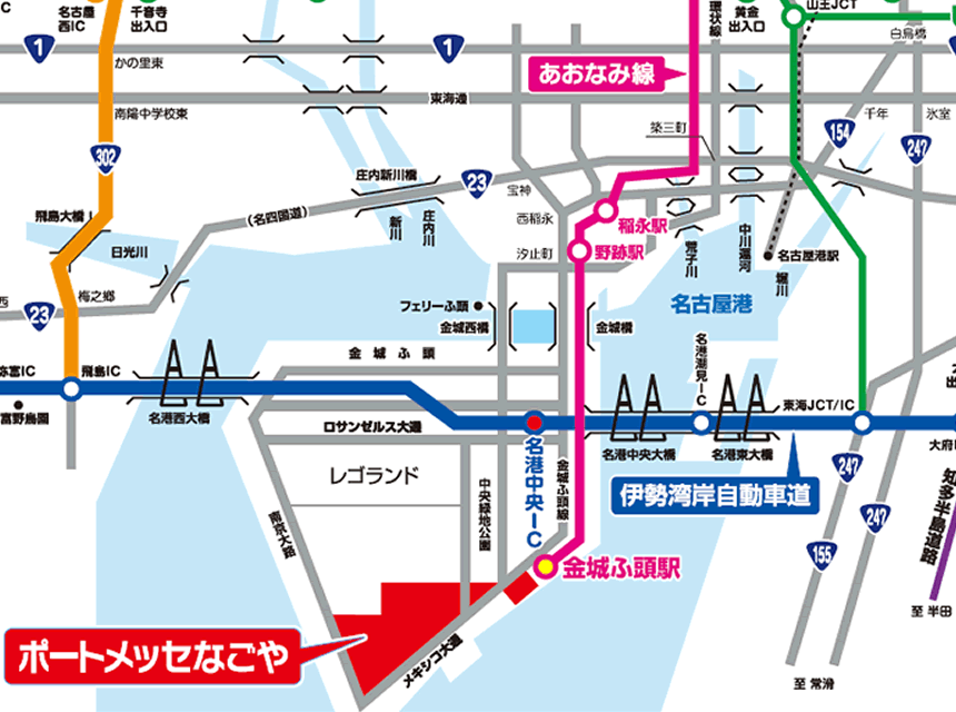 開催中は周辺道路や駐車場が大変混雑いたします。ご来場あたっては、あおなみ線をご利用いただきますようご協力をお願いします。
